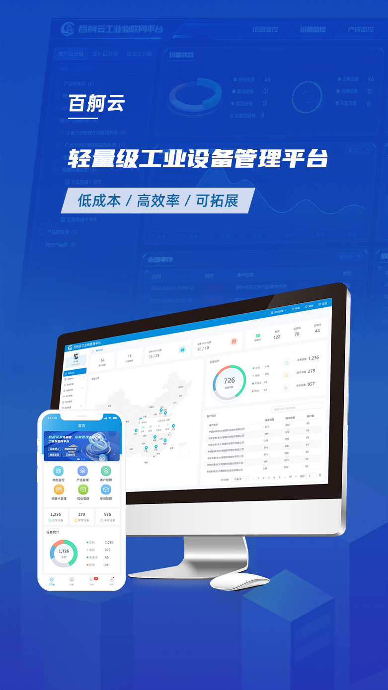 公司客戶很多,需要對客戶提供數據統計報表服務;后續需要對所有售出的設備進行遠程監控,能夠監控設備運行的實時參數、實時數據曲線、設備故障報警實時提醒、故障維保后的工單記錄存檔、售出設備的地理位置分布等等。